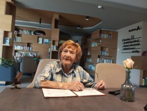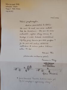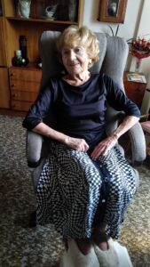 „Najednou se ozvala detonace… Utíkali jsme do budovy dnešní radnice na Komenského náměstí, tam byl kryt. Nějak mi utkvělo z té doby, že tam vpadnul i nějaký německý důstojník a viděla jsem tu hrůzu v jeho očích. Češi a on jedinej Němec. Možná, že čekal, že bude lynčovanej, ale to se nestalo. Každýho svírala hrůza, co bude.“