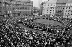 „Pamatuju si, že jednou v lednu 1989 uzavřeli pořádkový jednotky celou ulici. A my jsme tam s maminkou byli. Byl tam otevřenej barák, tak jsme do něj vběhli. A okolo nás proběhl student a za ním dva nebo tři policajti v bílejch helmách a s bílejma obuškama. I ten zvuk si pamatuju – to mlácení tím obuškem. A moje máma si stoupla přede mě a chránila mě jako kvočna. To bylo hodně emocionální.“