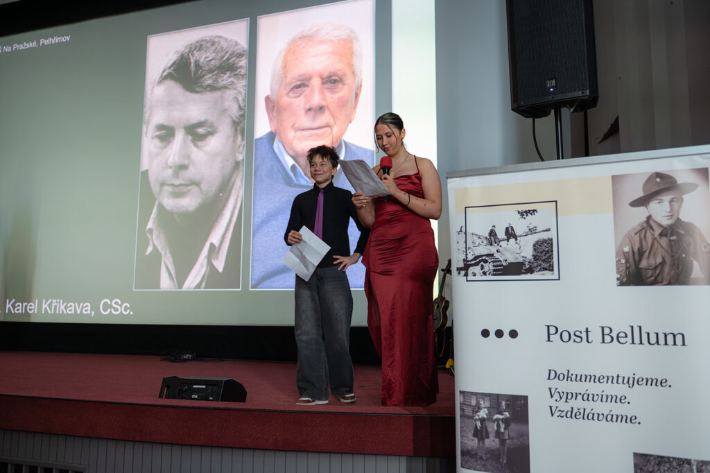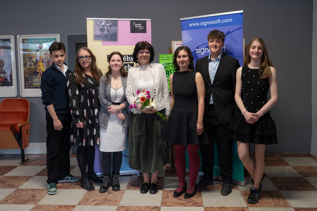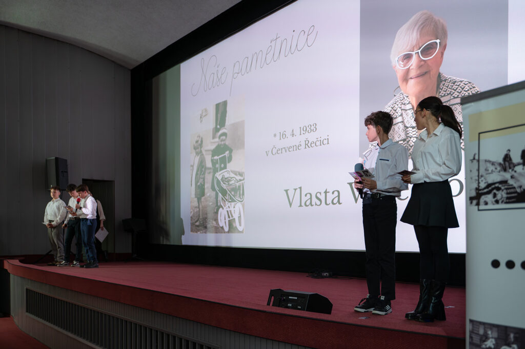 Po úvodních slovech moderátorka Anna Kadlecová předala mikrofon jednotlivým týmům, aby představily své pamětníky, kteří zaujali čestná místa v první řadě. Ne všichni pamětníci se však mohli dostavit – pan doktor Karel Křikava se omluvil a paní Alenu Junkovou zastoupil v hledišti její syn.