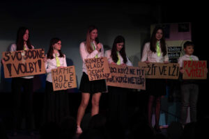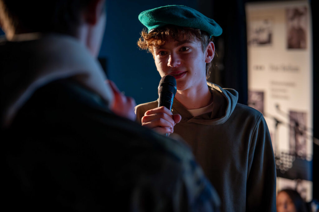 Divadlo Dobeška se ve čtvrtek 26. března 2026 odpoledne zaplnilo do posledního místa! Právě zde vyvrcholil letošní běh projektu Příběhy našich sousedů, do něhož se zapojili žáci z deseti základních škol z Prahy 4. Před plným sálem představili veřejnosti příběhy deseti pamětníků, které během několika měsíců zpracovávali pod vedením svých pedagogů.