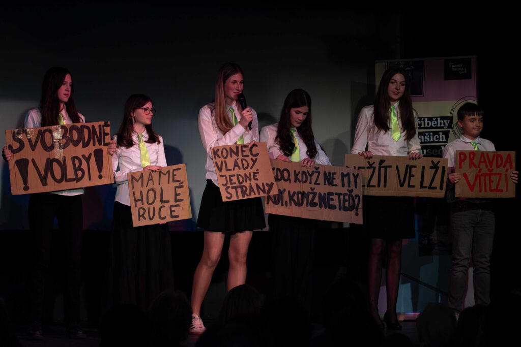 Do letošního ročníku se zapojilo celkem 49 žáků. Vyprávění pamětníků převedli do podoby audio reportáží, komiksů i videí. Výsledky jejich půlroční práce přinesly do sálu silné emoce, napětí, humor i radost ze společného sdílení.