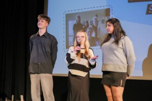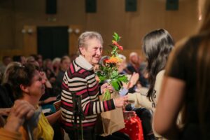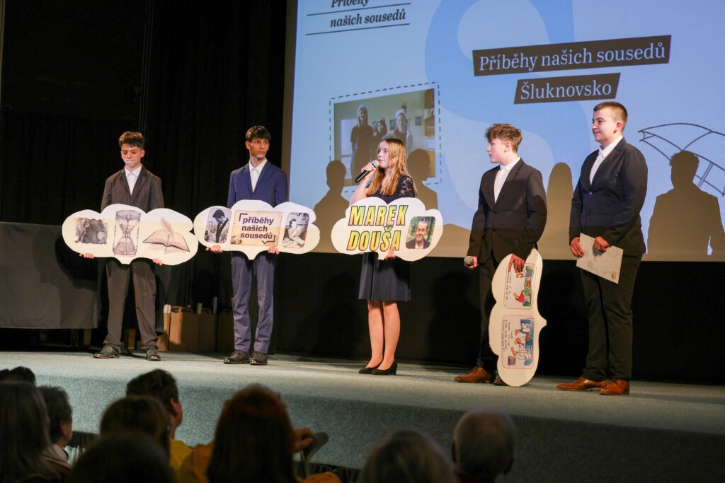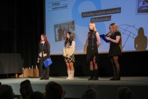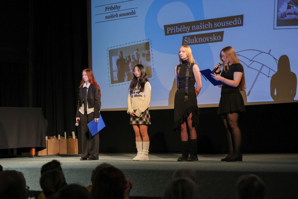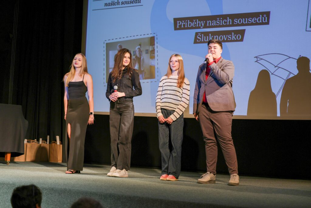 Diváci se rozhodně nenudili. Celkem 11 týmů z jedenácti škol Šluknovského výběžku představilo své videoreportáže, které byly velmi dobře propracované, a výstupy jednotlivých týmů na pódiu byly skvělé. Nechyběl ani slavnostní moment poděkování – žáci předávali pamětníkům květiny a drobné dárky, sami si pak odnesli certifikáty a tašky s odměnami.